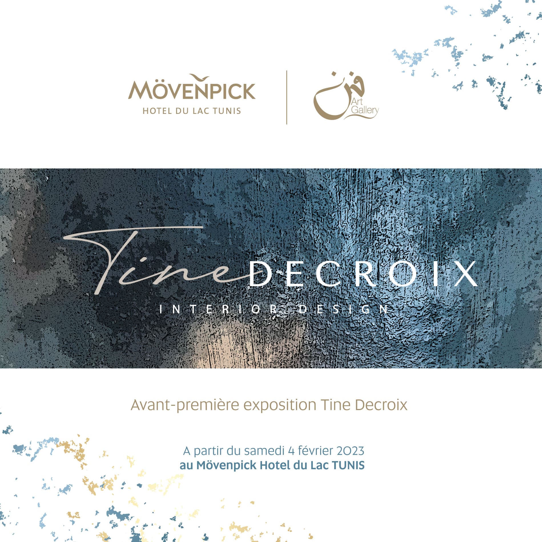 Dans le cadre de la préparation de son nouveau concept inédit qui va le démarquer de l’hôtellerie traditionnelle en mettant en avant lart et la culture, le Mövenpick Hotel du Lac Tunis inaugure le 3 février 2023 ses premières activités artistiques à travers une exposition en avant-première de l’artiste Tine Decroix, exposition que le grand public pourra découvrir à partir du 4 février 2023.